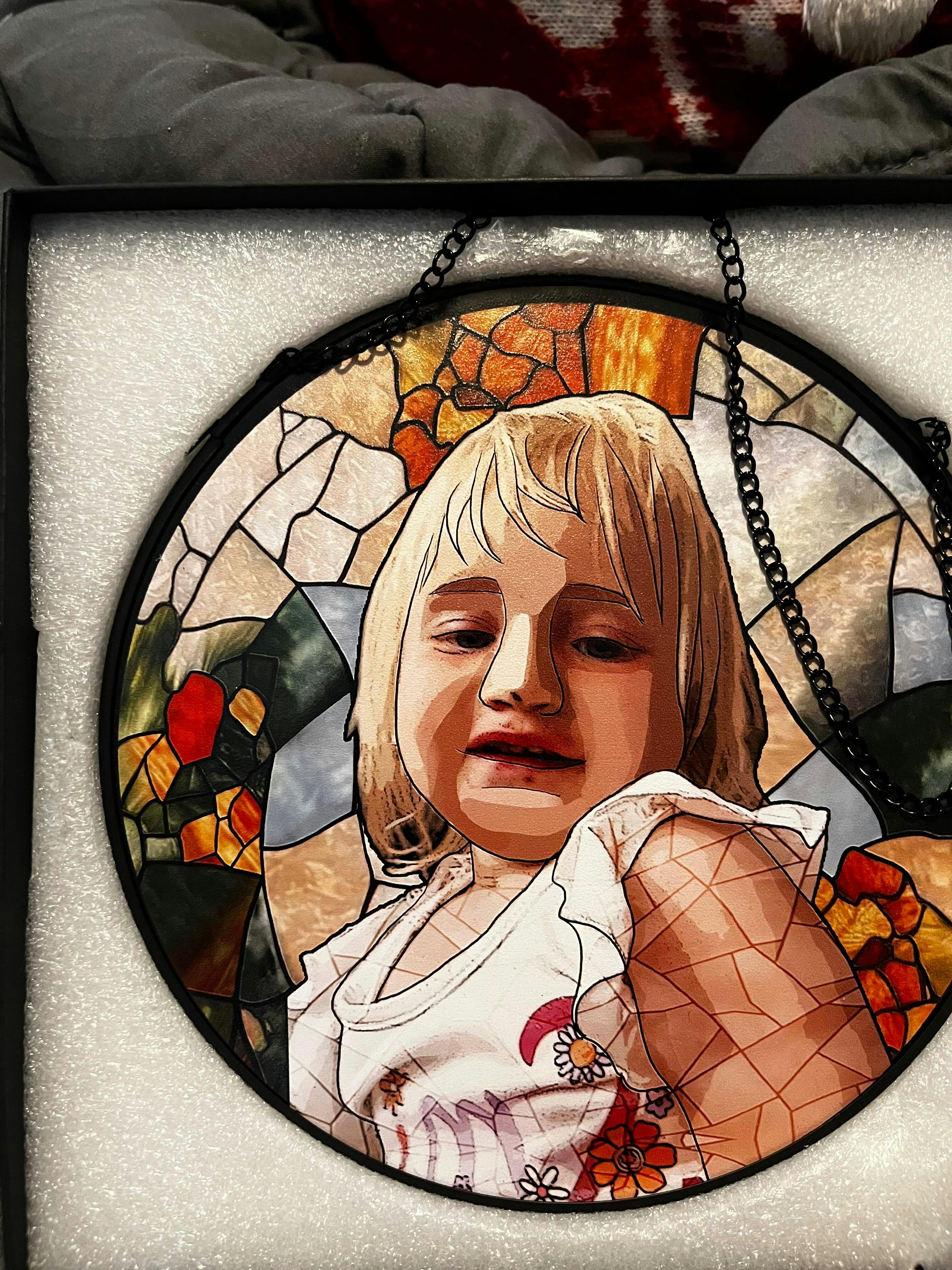 Add a special, sentimental touch to your home decor by hanging this suncatcher in a window. Its vibrant colors and intricate design will catch the light, creating beautiful reflections throughout the day. Whether it's for a gift for a mother, grandma, or husband, this suncatcher makes an unforgettable keepsake.