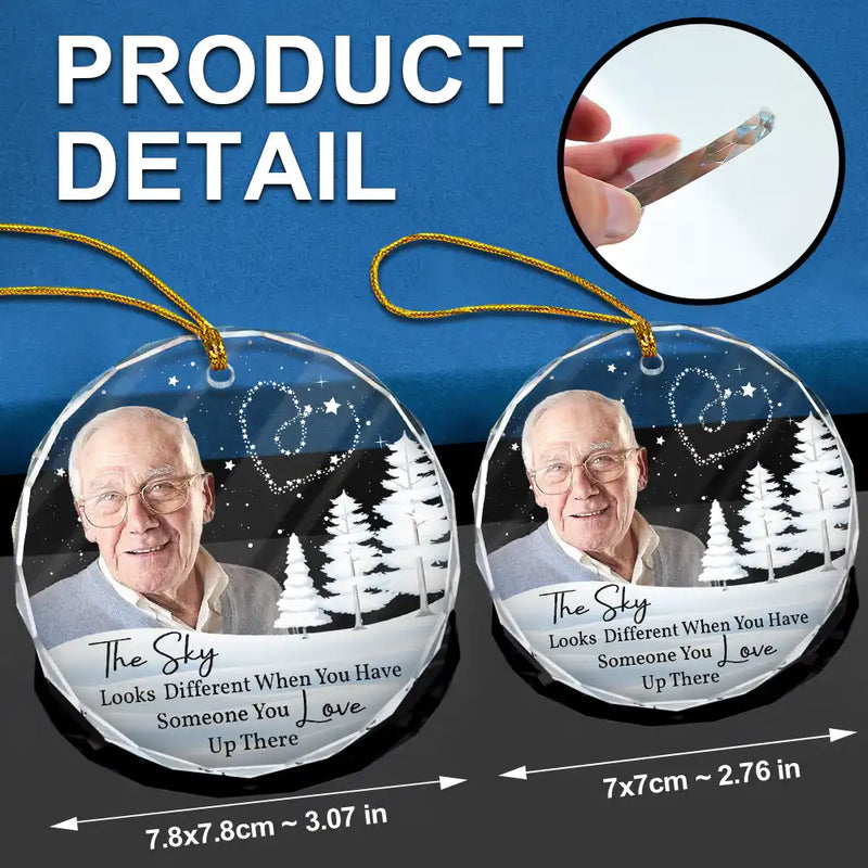 Custom Photo The Sky Looks Different Memorial Family - Personalized Glass Ornament