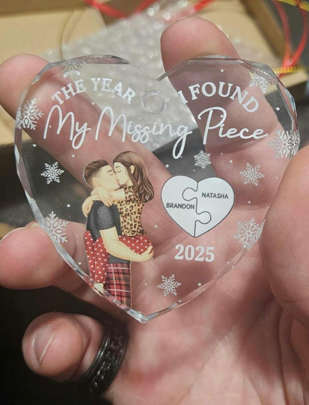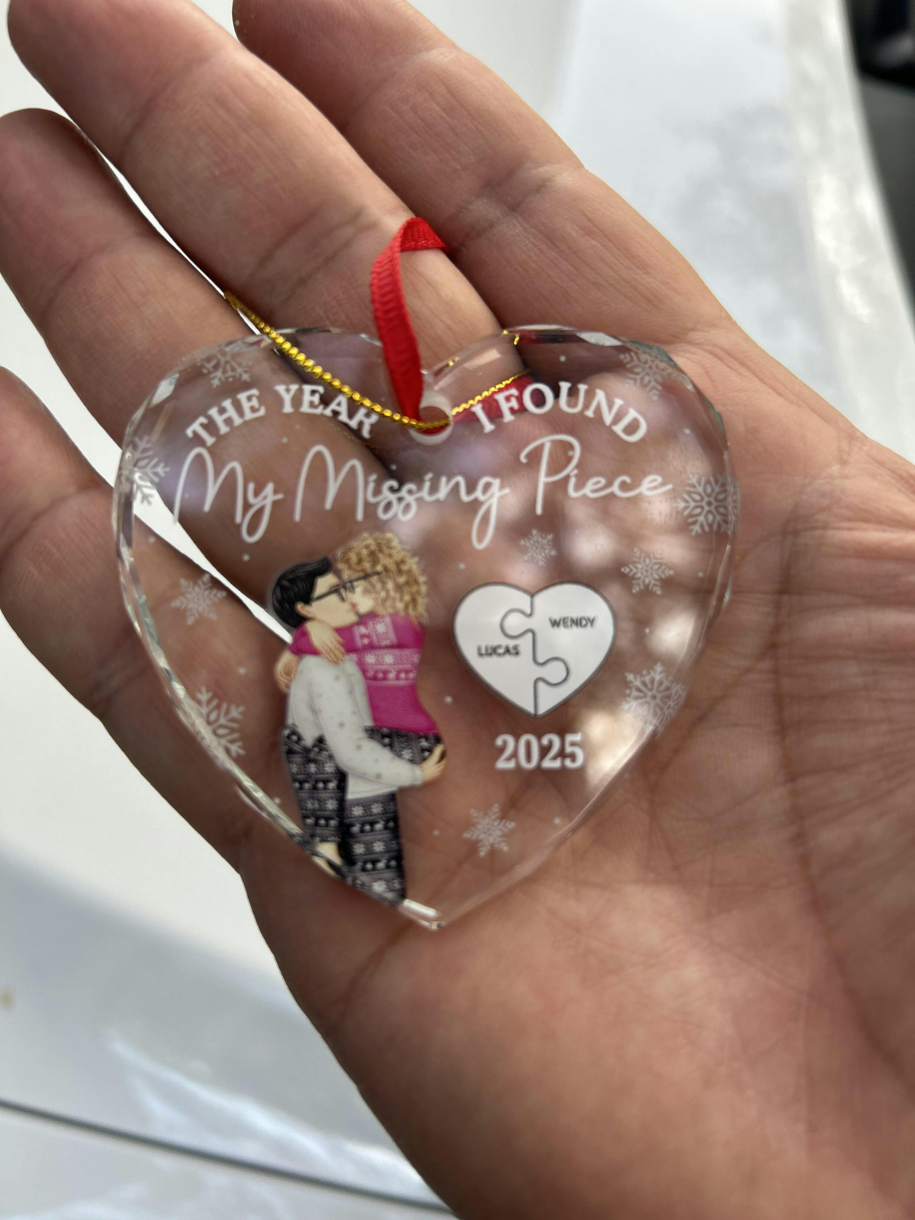 The Year I Found My Missing Piece Kissing Couples - Personalized Heart Shaped Glass Ornament