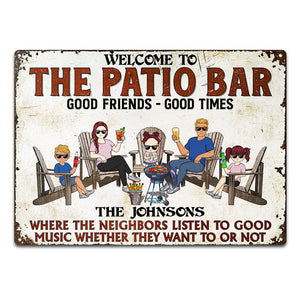 Patio Bar Grilling Listen To Good Music Family - Backyard Sign - Personalized Custom Classic Metal Signs