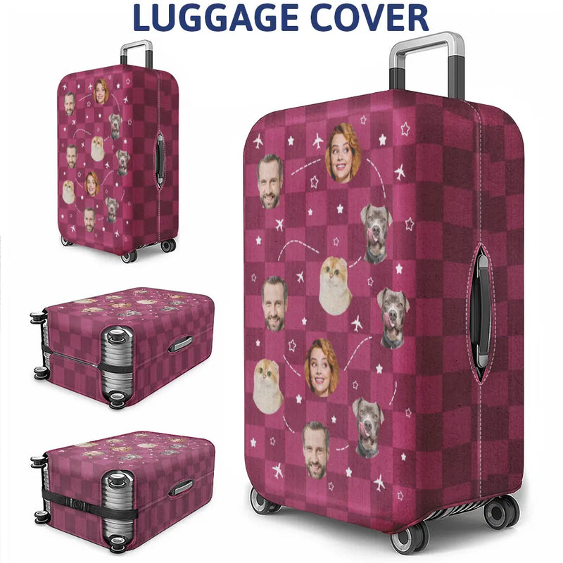 Custom Photo Funny Family Pet Faces - Personalized Luggage Cover
