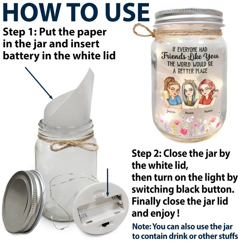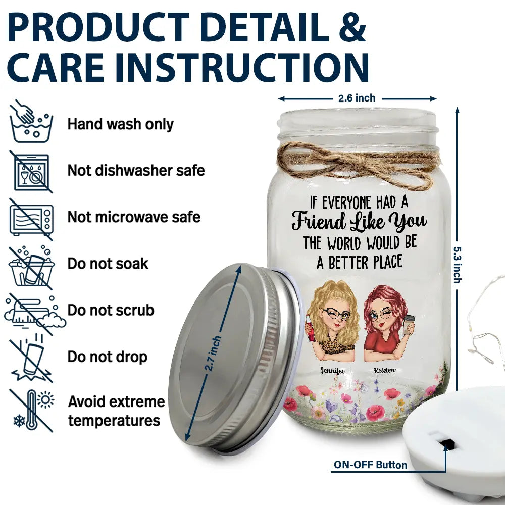 Make memories shine with the If Everyone Had A Friend Like You - Personalized Mason Jar Light, a meaningful keepsake crafted as a gift for women, besties, or sisters. This awesome and unique piece is perfect for Christmas, birthdays, Thanksgiving, Mother’s Day, Valentine’s Day, or any occasion when you want to show how much your friend is appreciated.