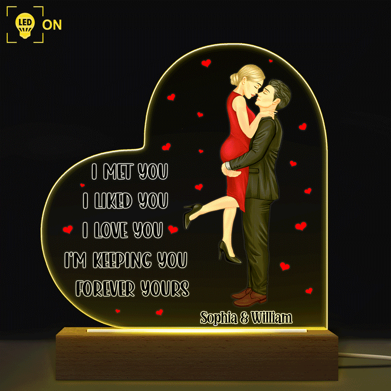 Kissing Couple I Love You - Anniversary, Birthday Gift For Spouse, Lover, Husband, Wife, Boyfriend, Girlfriend, Married Couples - Personalized Custom 3D Led Light Wooden Base