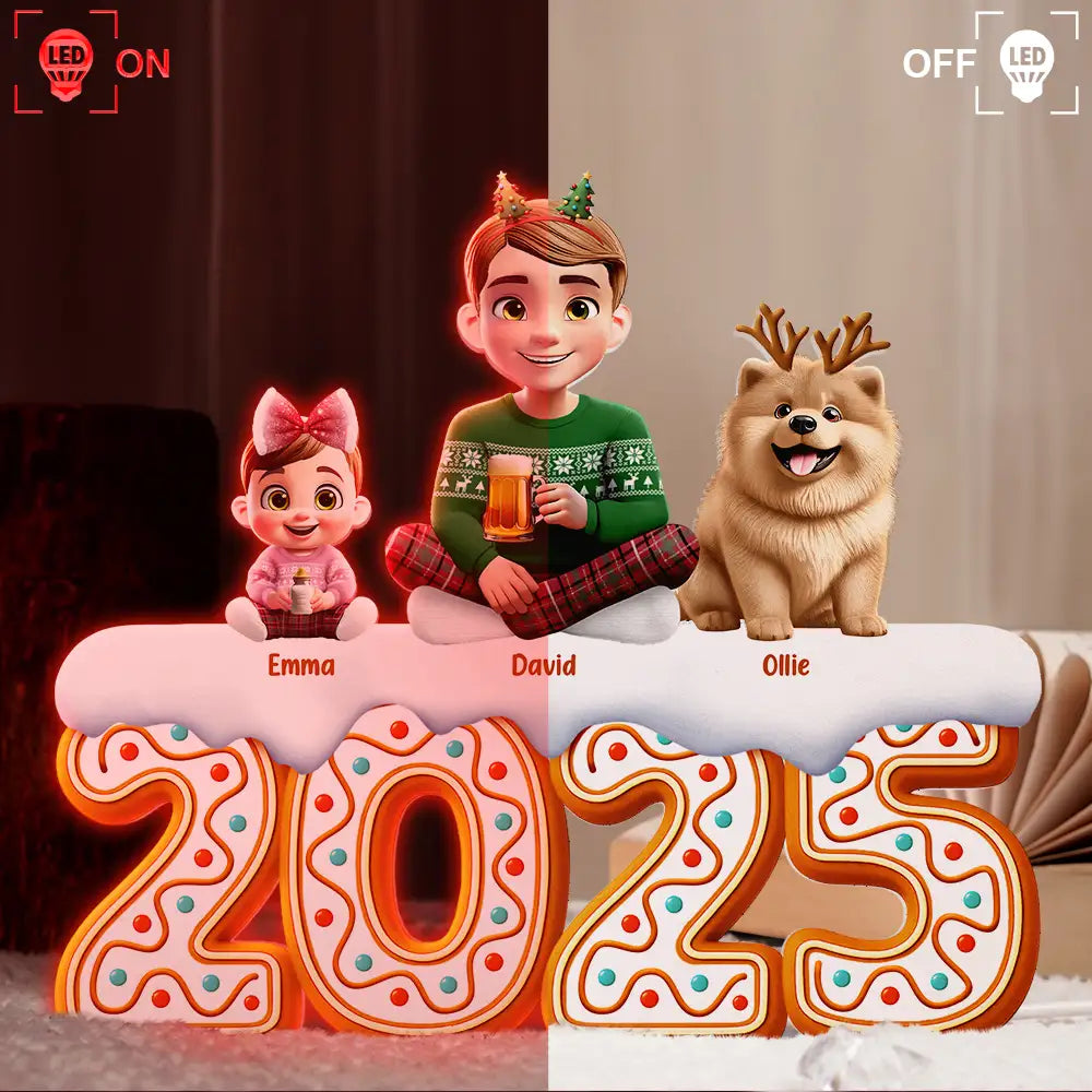 Christmas Gingerbread Family 3D Effect - Personalized Custom Shaped Light Box