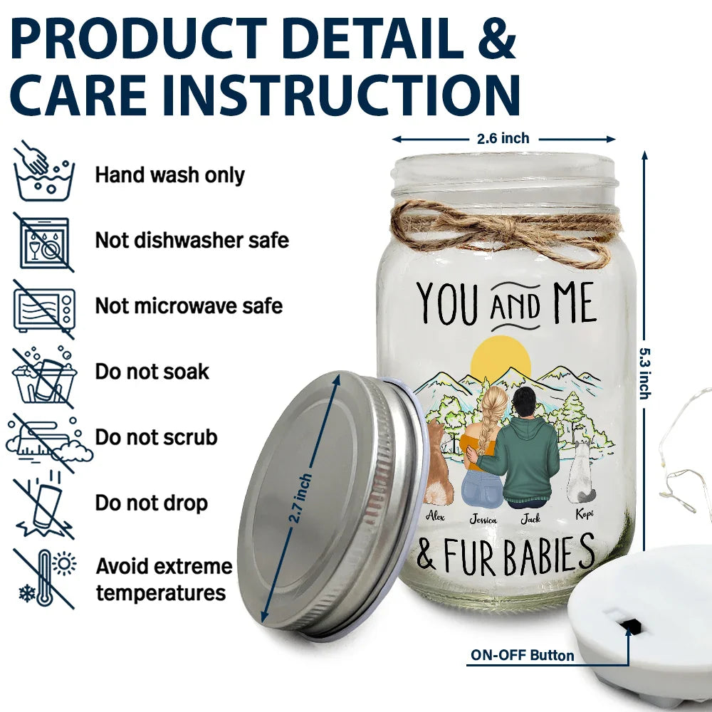 You And Me And The Fur Babies - Personalized Mason Jar Light