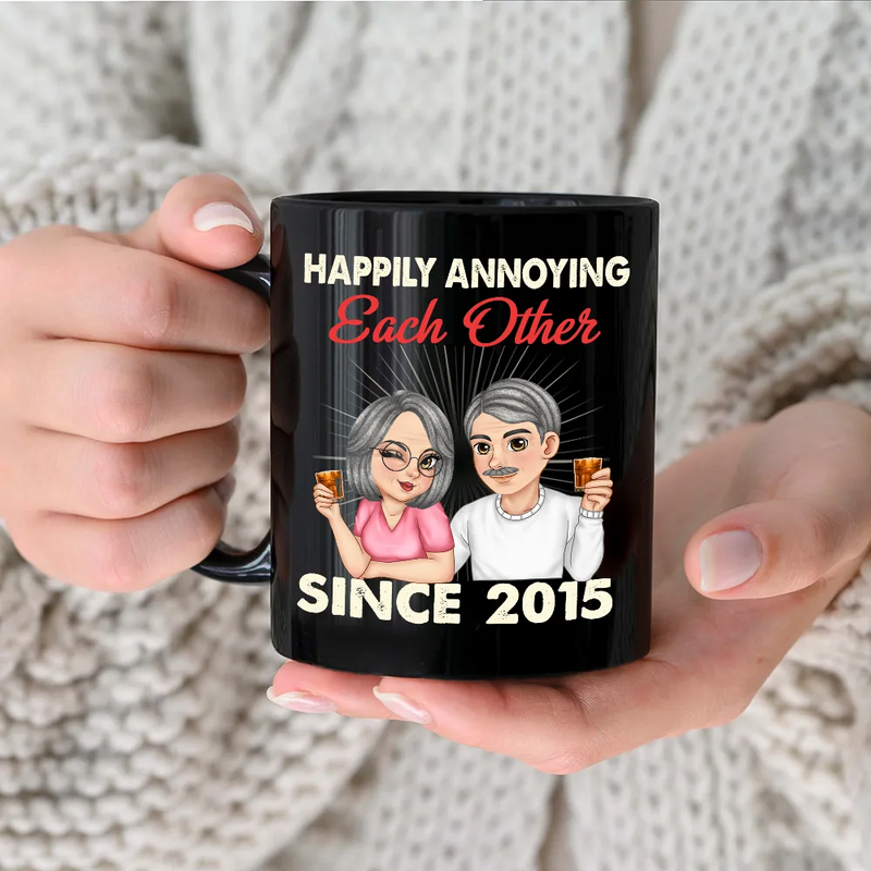 Couple Happily Annoying Each Other - Personalized Black Mug