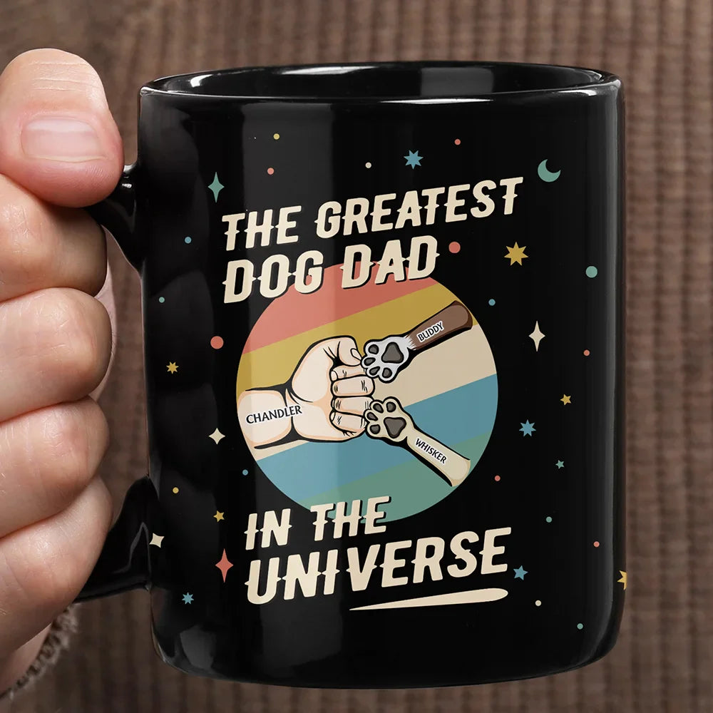 The Greatest Dog Dad In The Universe - Personalized Black Mug