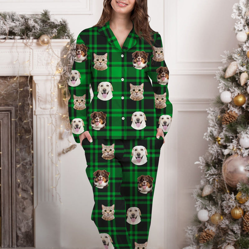 Custom Photo Dog Cat Face - Gift For Pet Lovers - Personalized Long Pajamas Set