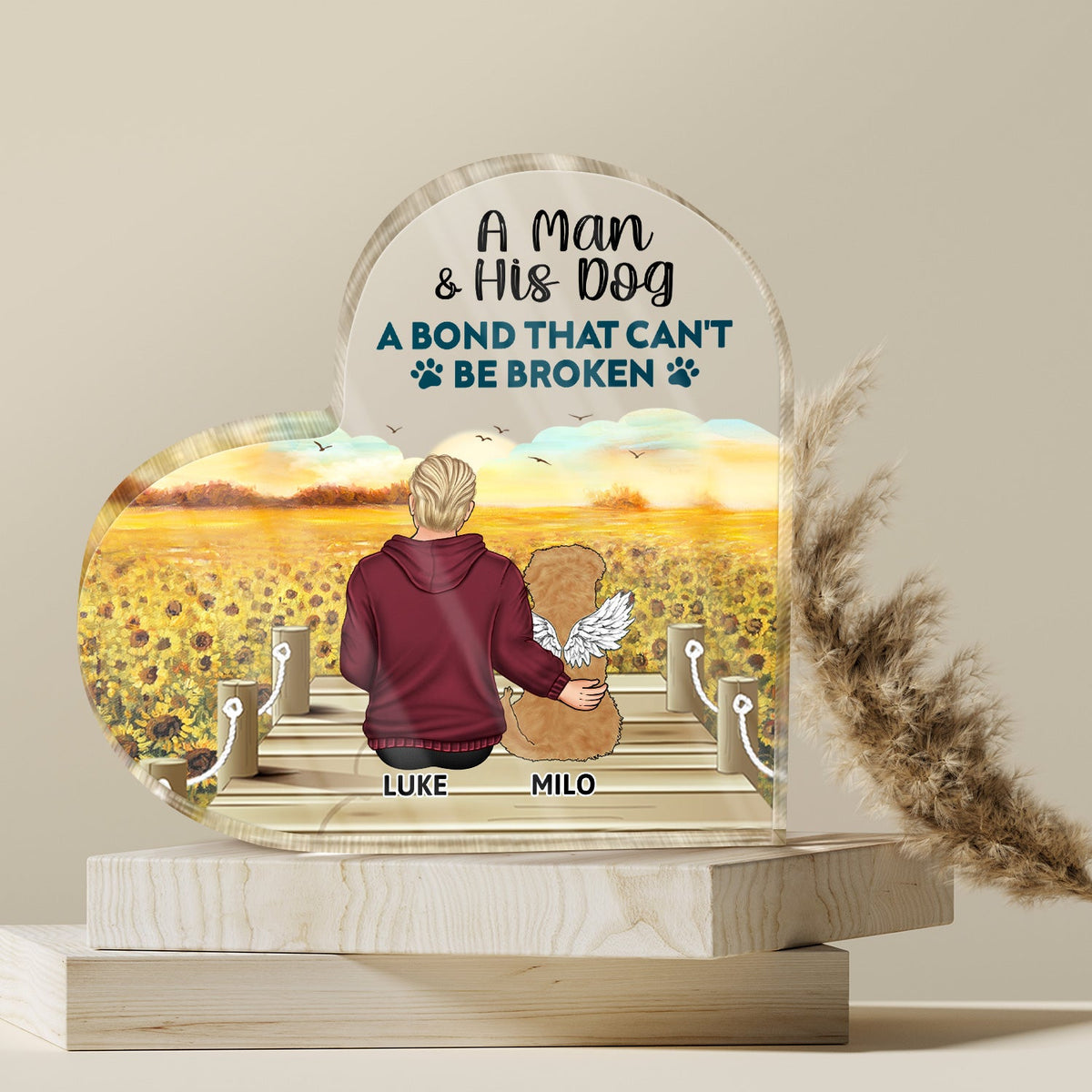 A Bond That Can't Be Broken - Gift For Dog Lovers, Dog Mom, Dog Dad - Personalized Heart Shaped Acrylic Plaque