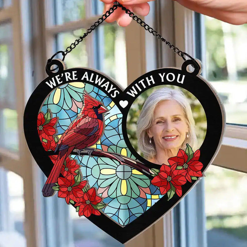 Custom Photo I'm Always With You Memorial Heart - Personalized Window Hanging Suncatcher Ornament