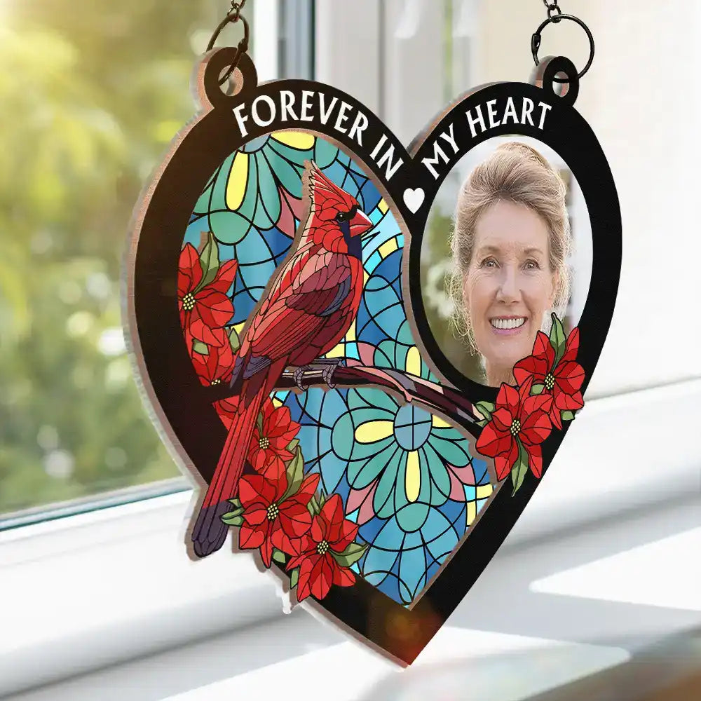 Honor the memory of a cherished loved one with the " Custom Photo I'm Always With You Memorial Heart" personalized window hanging suncatcher ornament. This heartfelt tribute is more than just a decoration; it's a comforting reminder that their presence will forever be felt. Perfect gift for Father's Day, Thanksgiving, Christmas, birthday, or anniversaries.