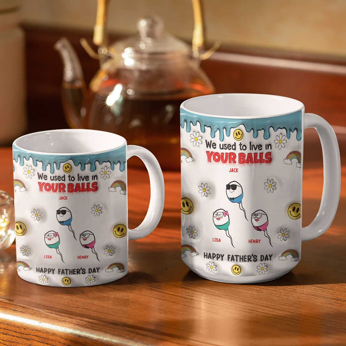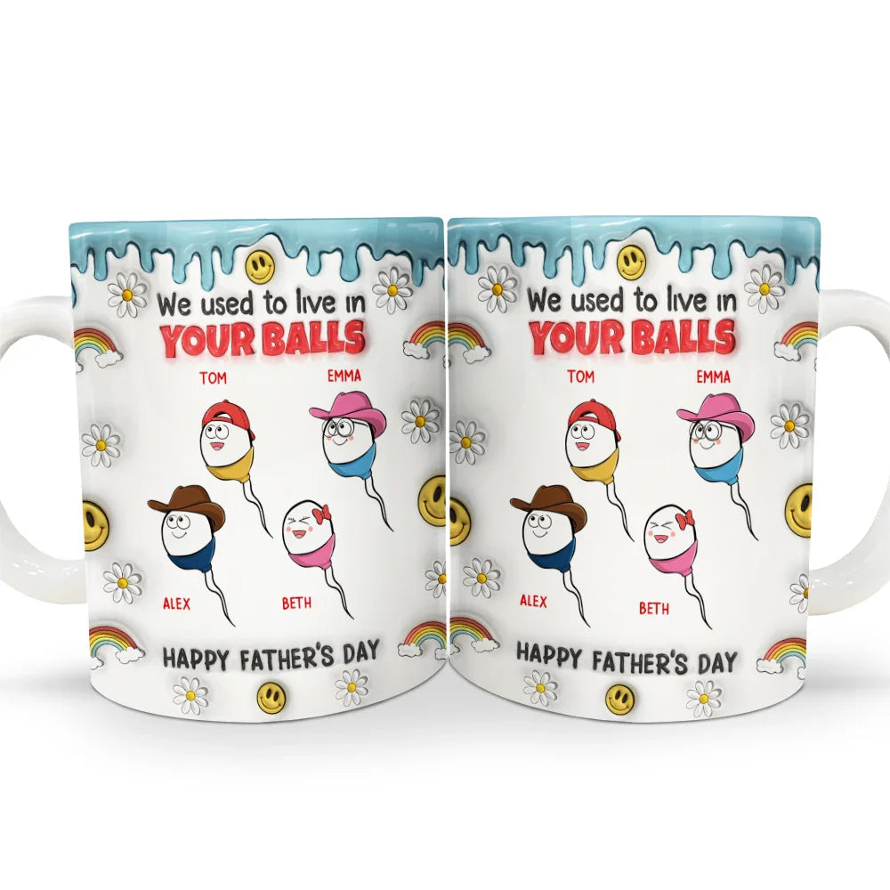 We Used To Lived In Your Balls - Gift For Fathers, Dad - 3D Inflated Effect Printed Mug, Personalized White Edge-to-Edge Mug