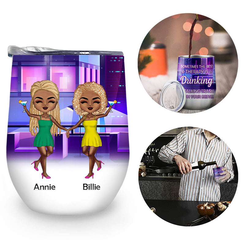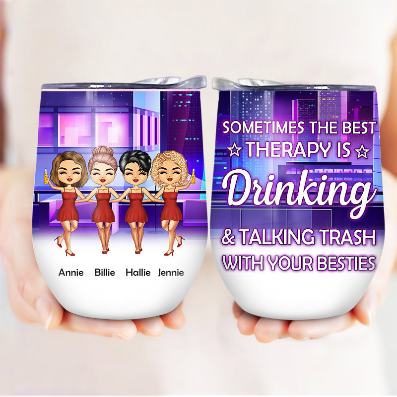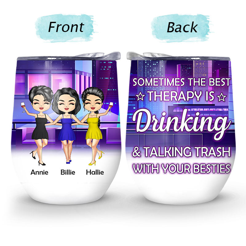 The Best Therapy Drinking - Gift For Besties, Best Friends, BFFs - Personalized Custom Wine Tumbler