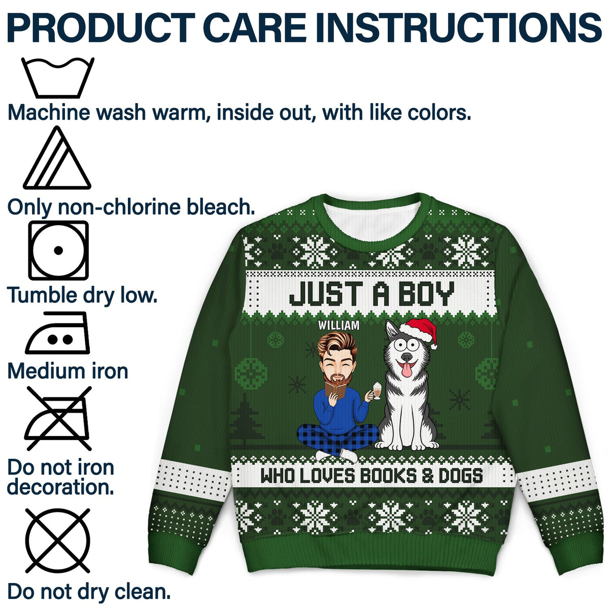 Christmas Reading Girl Who Loves Books & Pets - Gift For Book Lovers. Pet Lovers - Personalized Unisex Ugly Sweater