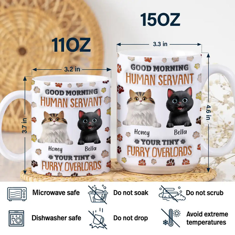 Good Morning Human Servant Funny Cat - 3D Inflated Effect Printed Mug, Personalized White Edge-to-Edge Mug