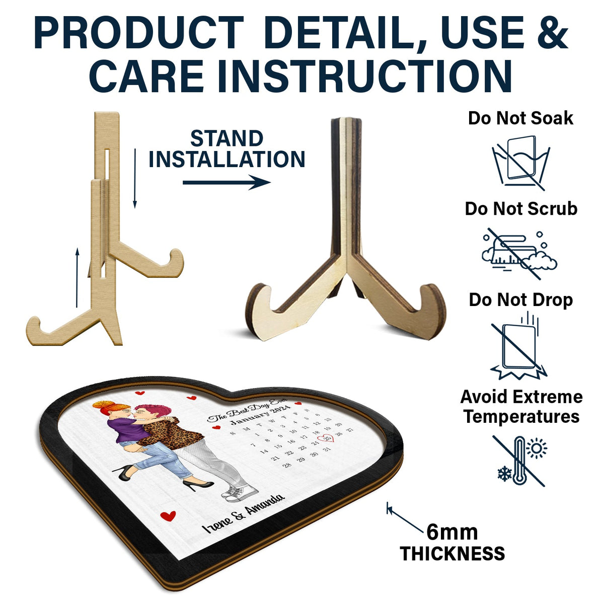 Calendar The Best Day Ever - Gift For Couples - Personalized 2-Layered Wooden Plaque