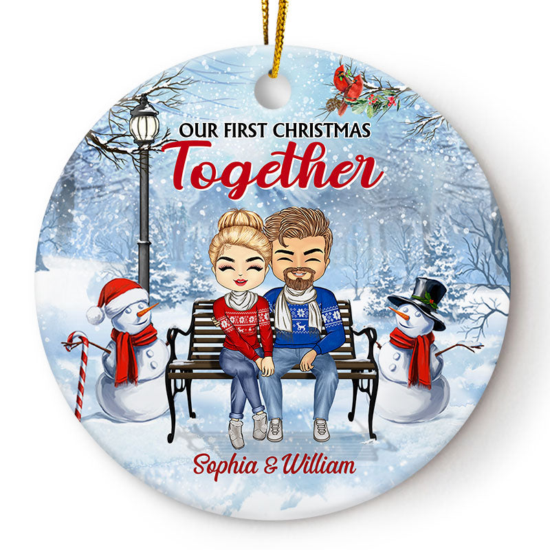 Christmas Family Chibi Couple Our First Christmas Together - Gift For Couples - Personalized Custom Circle Ceramic Ornament