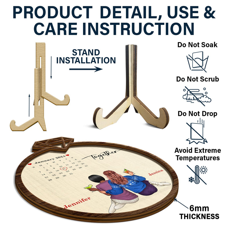 Couple Calendar Married Engaged - Gift For Couples - Personalized 2-Layered Wooden Plaque With Stand