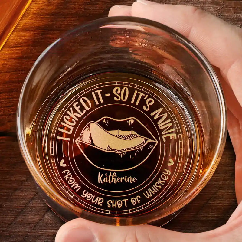 Couple I Licked It So It's Mine Husband Wife - Personalized Engraved Whiskey Glass