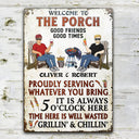 Welcome To Our Patio Proudly Serving Whatever You Bring Couple Husband Wife - Backyard Sign - Personalized Custom Classic Metal Signs