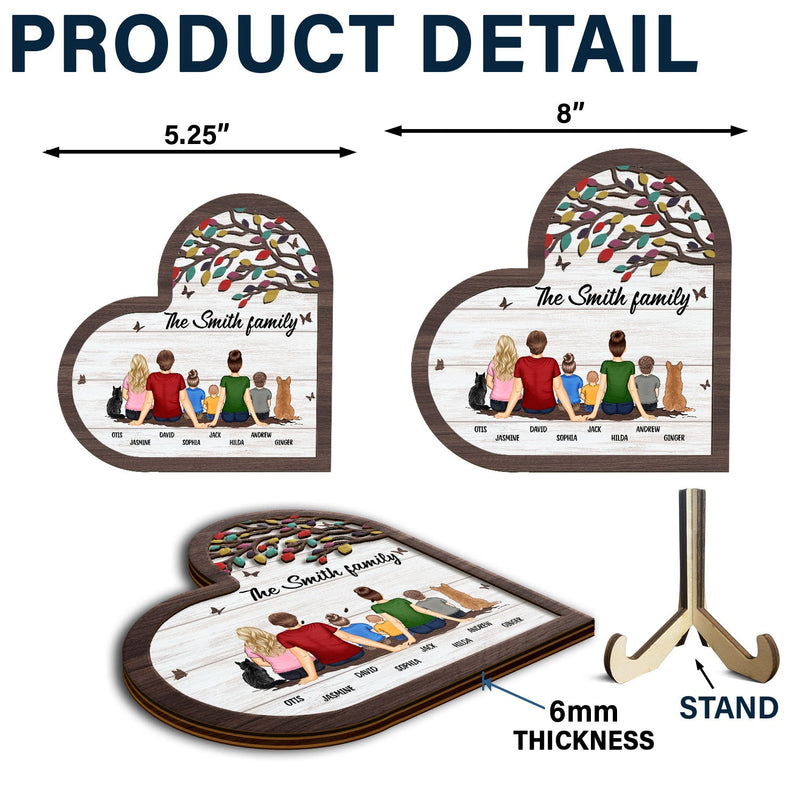 Back Family Sitting Together - Gift For Family - Personalized 2-Layered Wooden Plaque With Stand