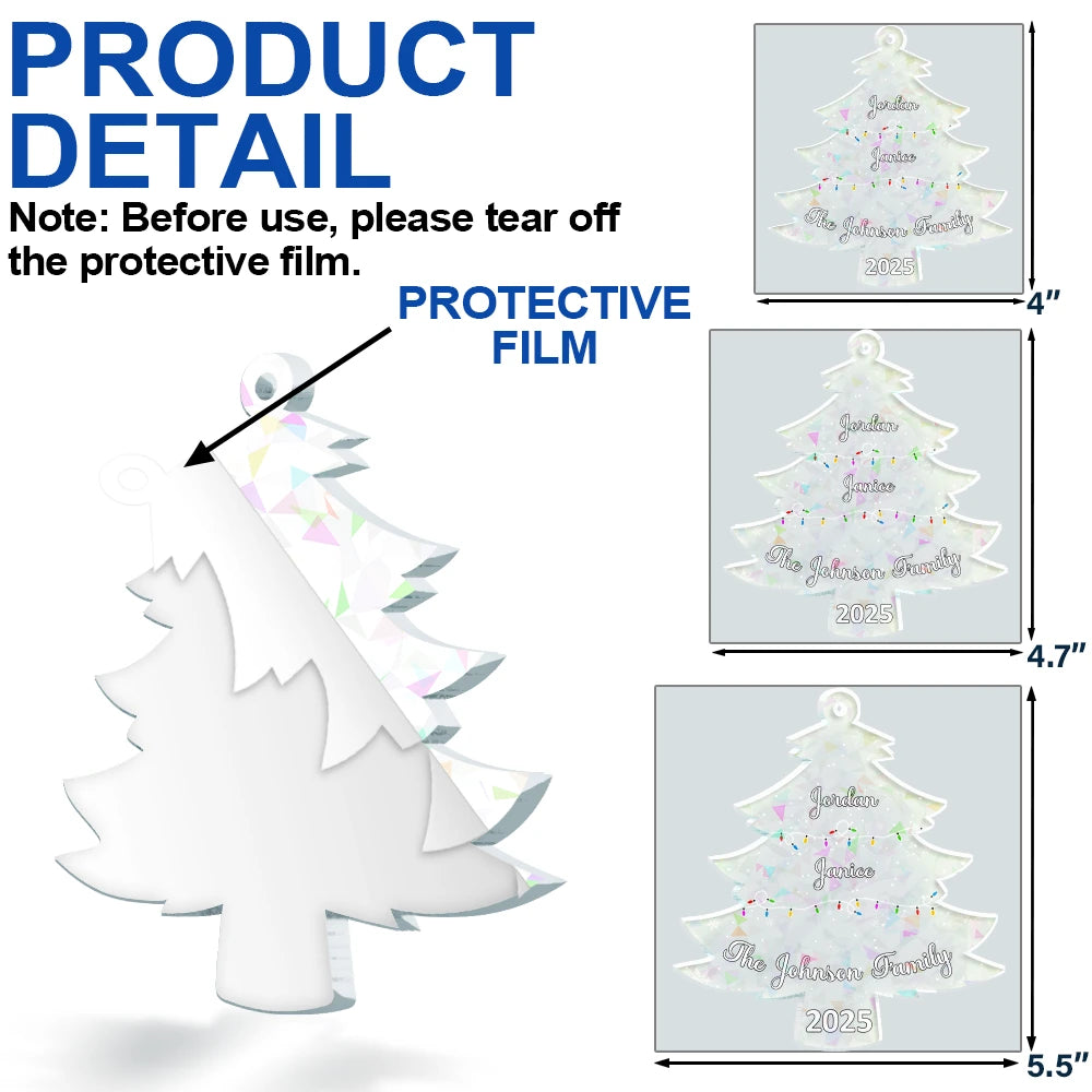 Christmas Tree With Family Names And Led Lights - Personalized Holographic Acrylic Ornament