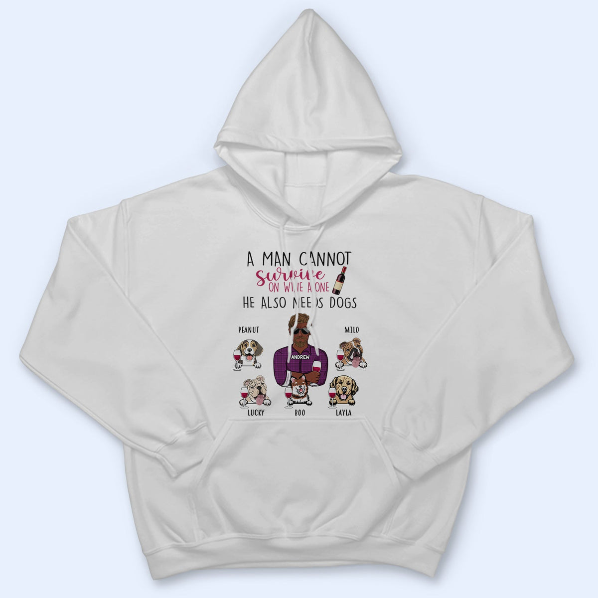 A Man Cannot Survive On Wine Beer Alone - Birthday, Loving Gift For Dog Dad, Daddy, Father, Grandpa, Grandfather, Husband, Men, Pet Lovers - Personalized Custom T Shirt