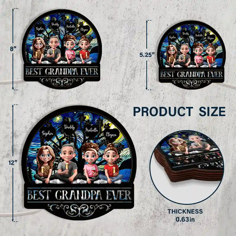 Best Dad Grandpa Ever - Personalized LED Light Wooden Plaque