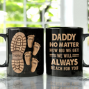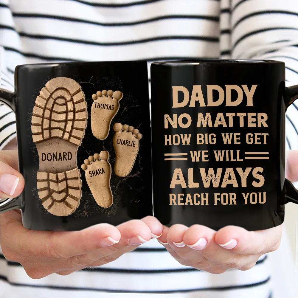 Dad And Kids Footsteps No Matter How Big We Get - Personalized Black Mug