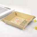 Crafted from high-quality leather and personalized with your message, this tray keeps keys, coins, and small essentials in one stylish spot - perfect for use in the bedroom, hallway, or office.