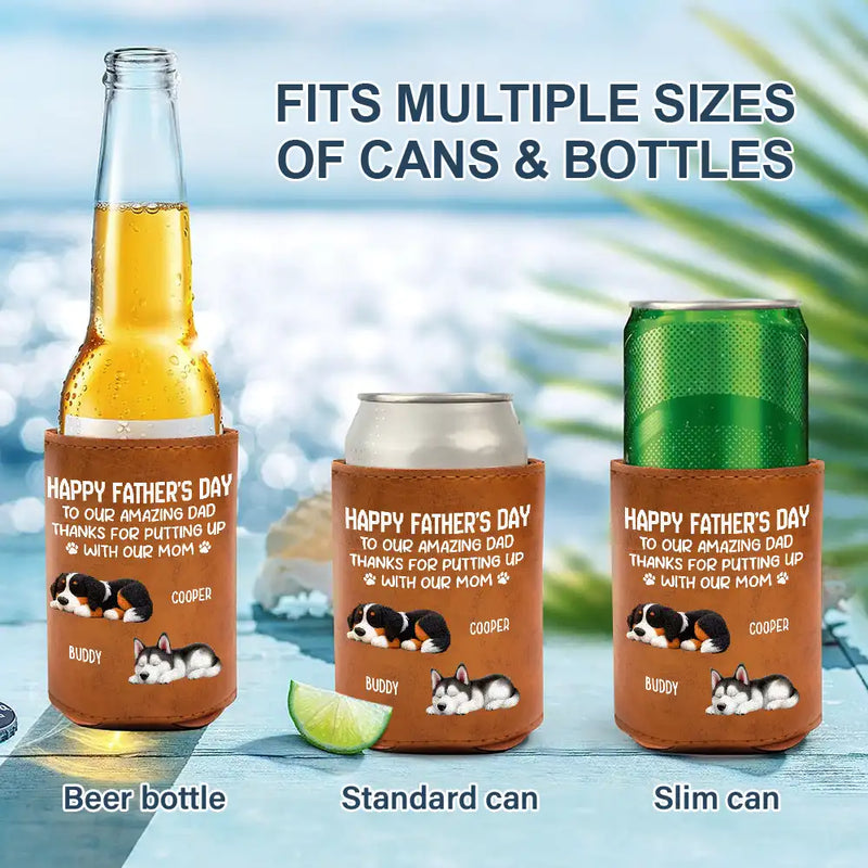 Thanks For Putting Up With My Mom - Personalized Leather Can Cooler