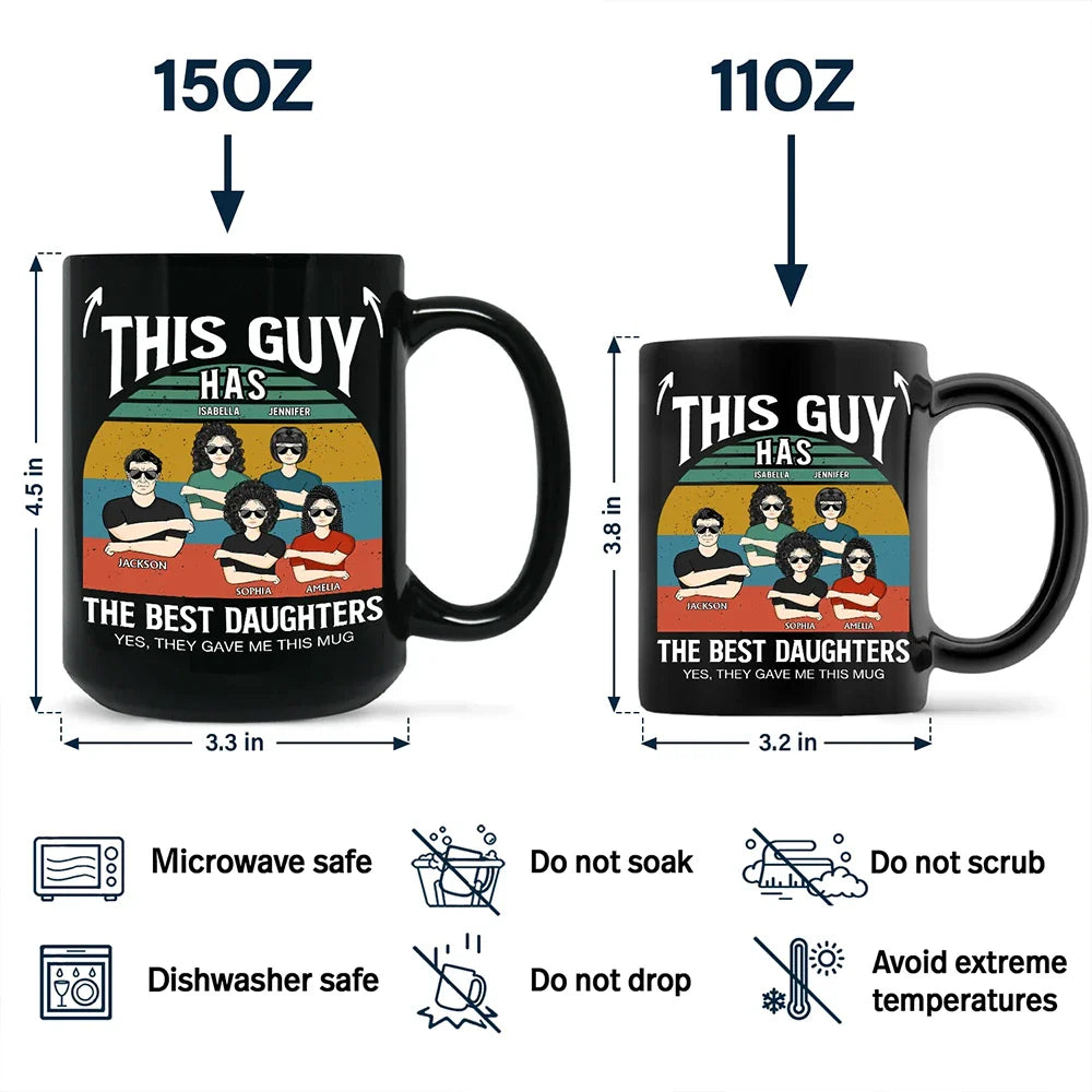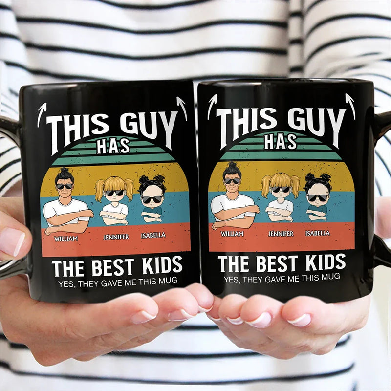 Make Dad Laugh with the This Guy Has The Best Daughter Son - Personalized Black Mug! This cool, hilarious gag mug is the perfect way to remind him just how lucky he is to have an amazing son or daughter like you. Whether it’s for Father’s Day, Christmas, Thanksgiving, a birthday, or just because, this unique gift for Dad is sure to bring laughter and joy every time he takes a sip.