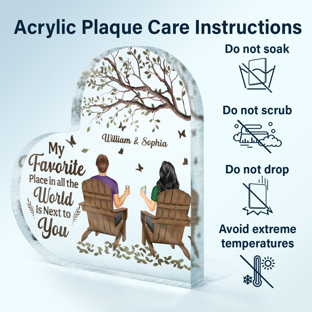 My Favorite Place In All The World - Anniversary Gift For Couples - Personalized Heart Shaped Acrylic Plaque