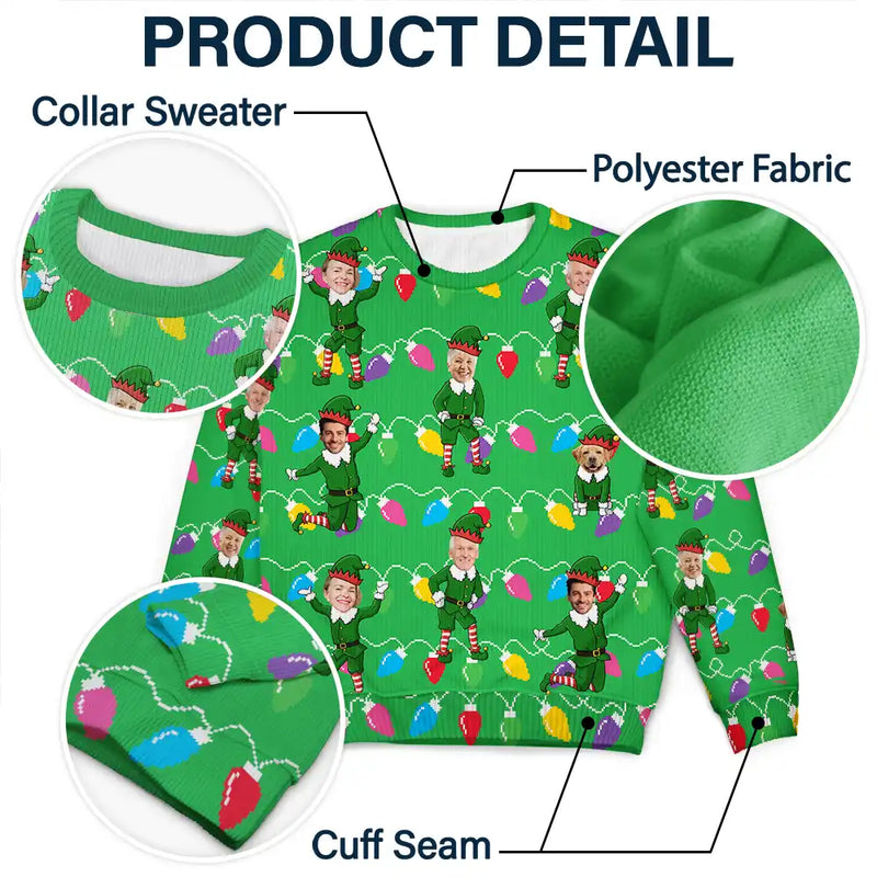 Custom Photo Christmas Family Elves - Personalized Unisex Ugly Sweater