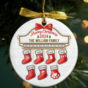 Family Red Sock Stocking Merry Christmas 2024 - 3D Inflated Effect Printed Personalized Circle Ceramic Ornament