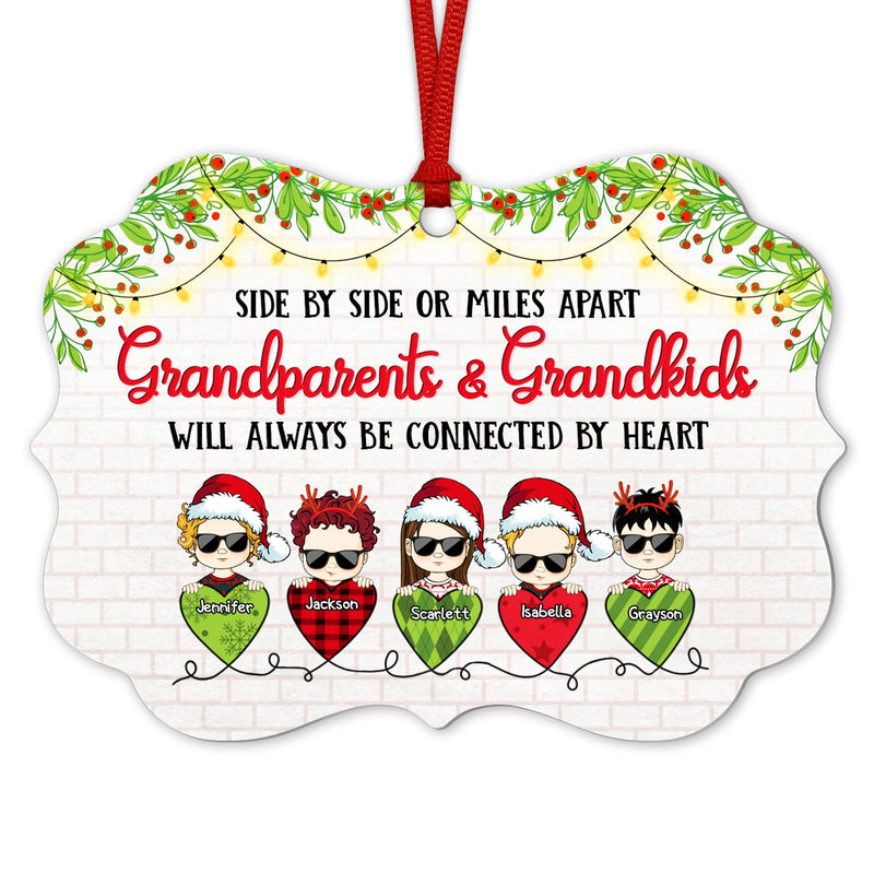 Grandparents & Grandkids Always Be Connected By Heart - Christmas Gift For Family - Personalized Custom Aluminum Ornament