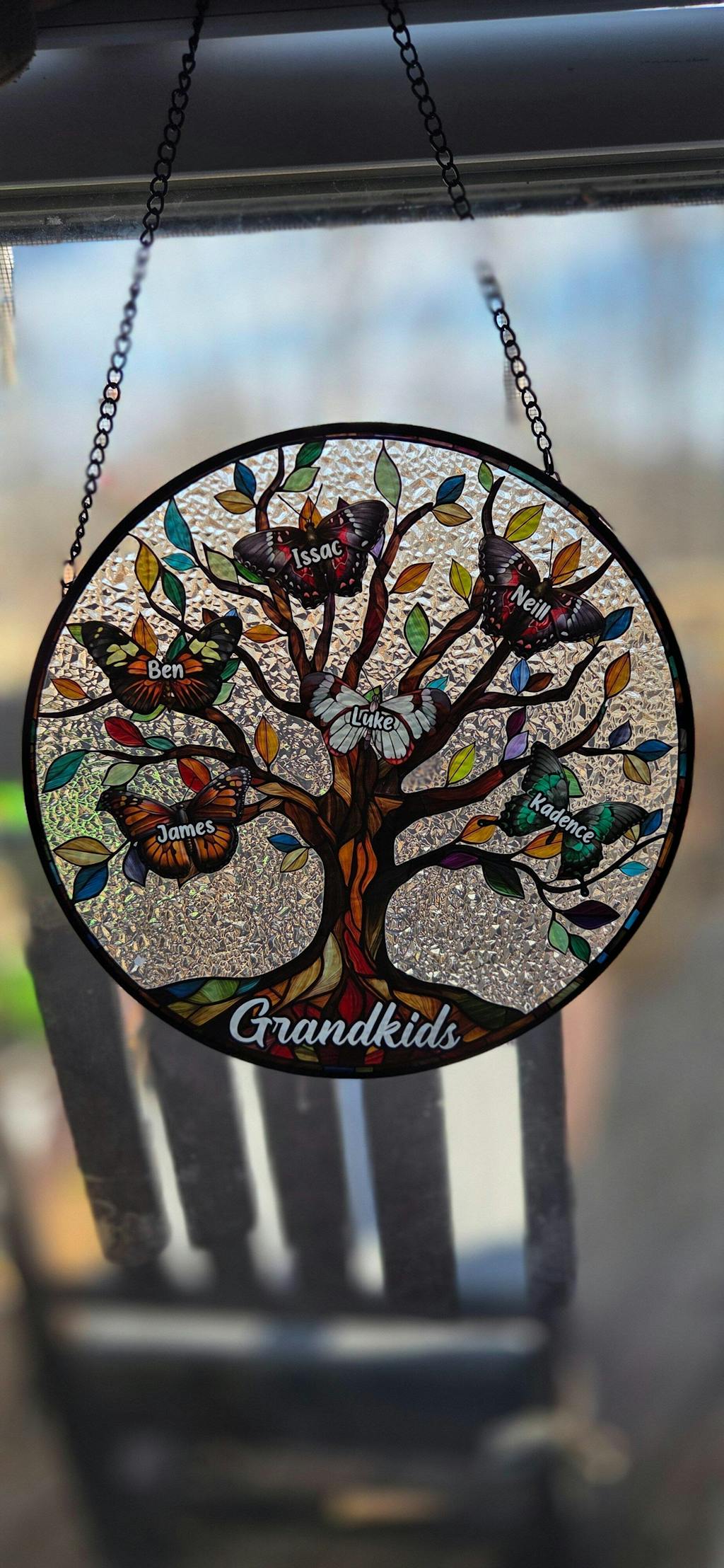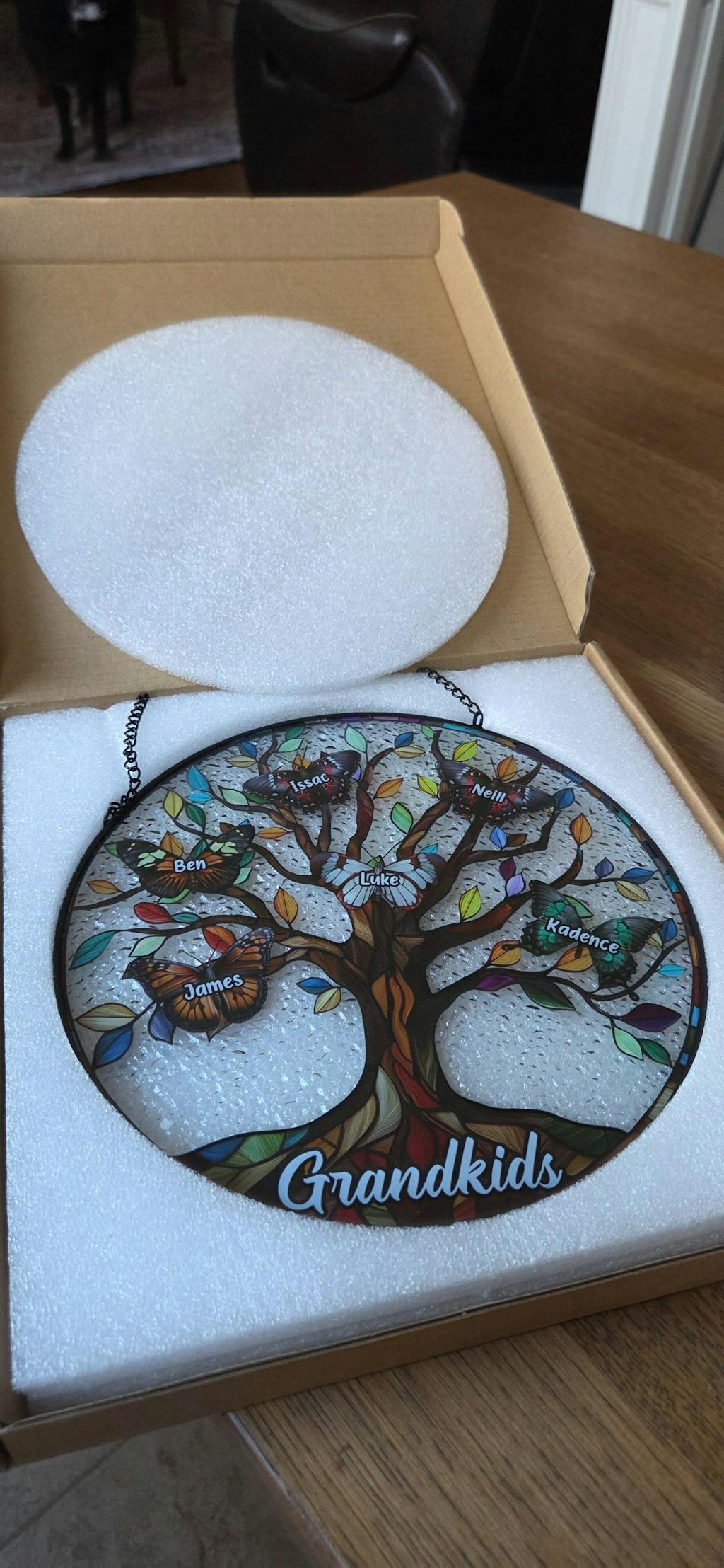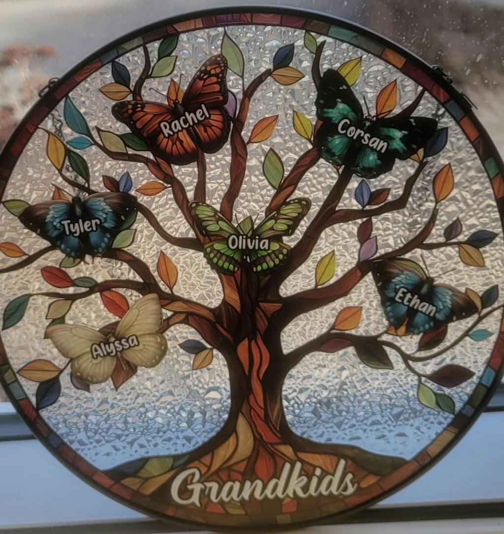 Butterfly Grandkids Tree - Personalized Stained Glass Window Hanging Suncatcher