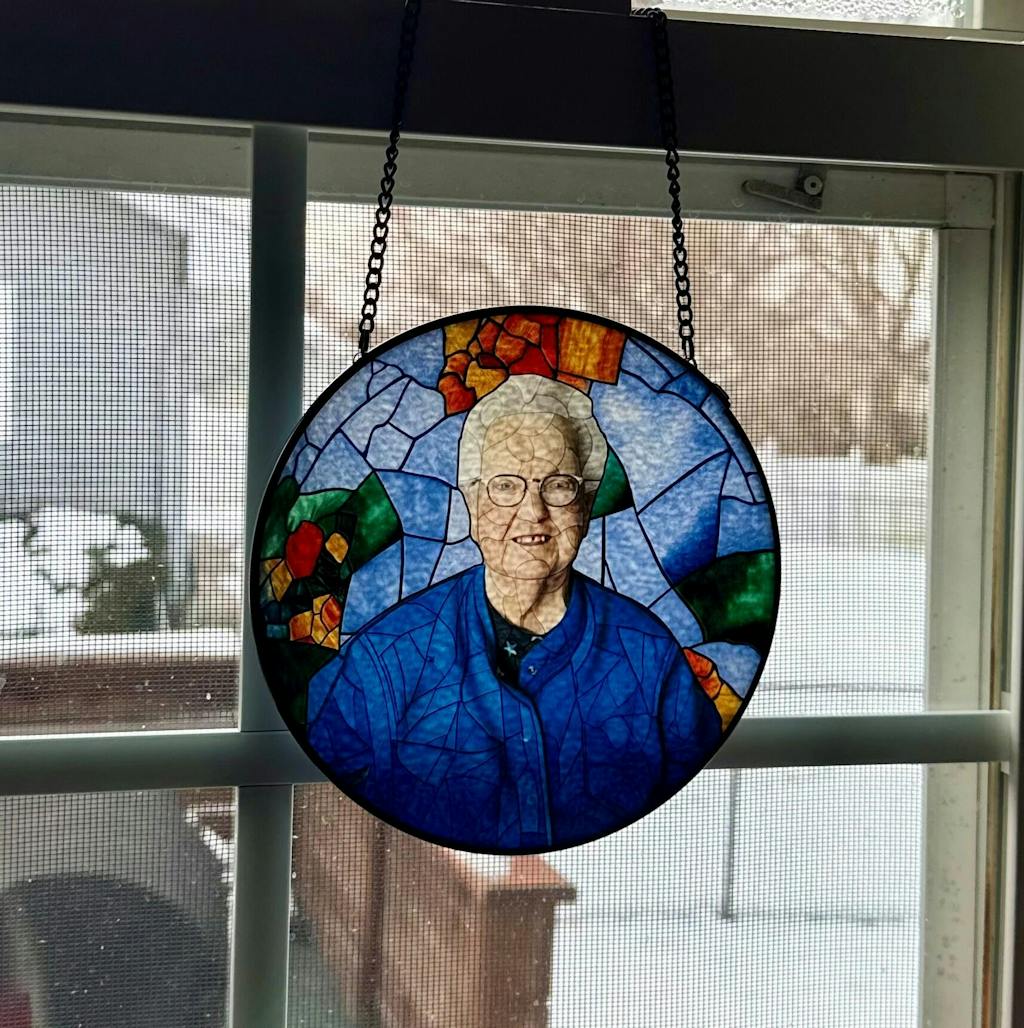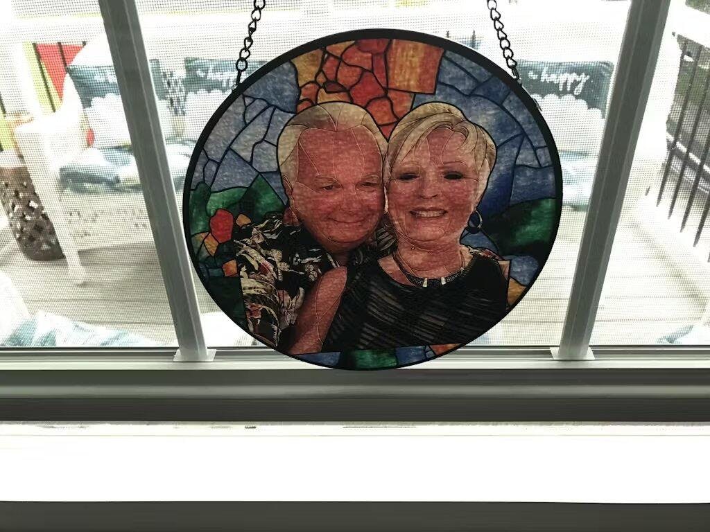 Custom Photo Portrait Mom Grandma Parents Family - Personalized Stained Glass Window Hanging Suncatcher
