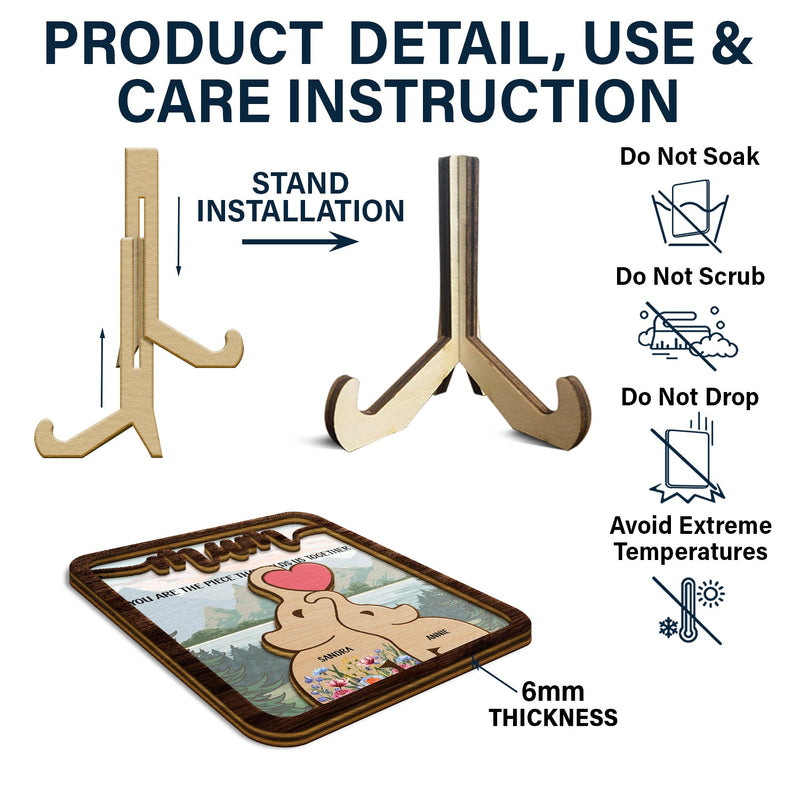 Elephant Mom You Are The Piece That Hold Us Together - Gift For Mothers - Personalized 2-Layered Wooden Plaque With Stand