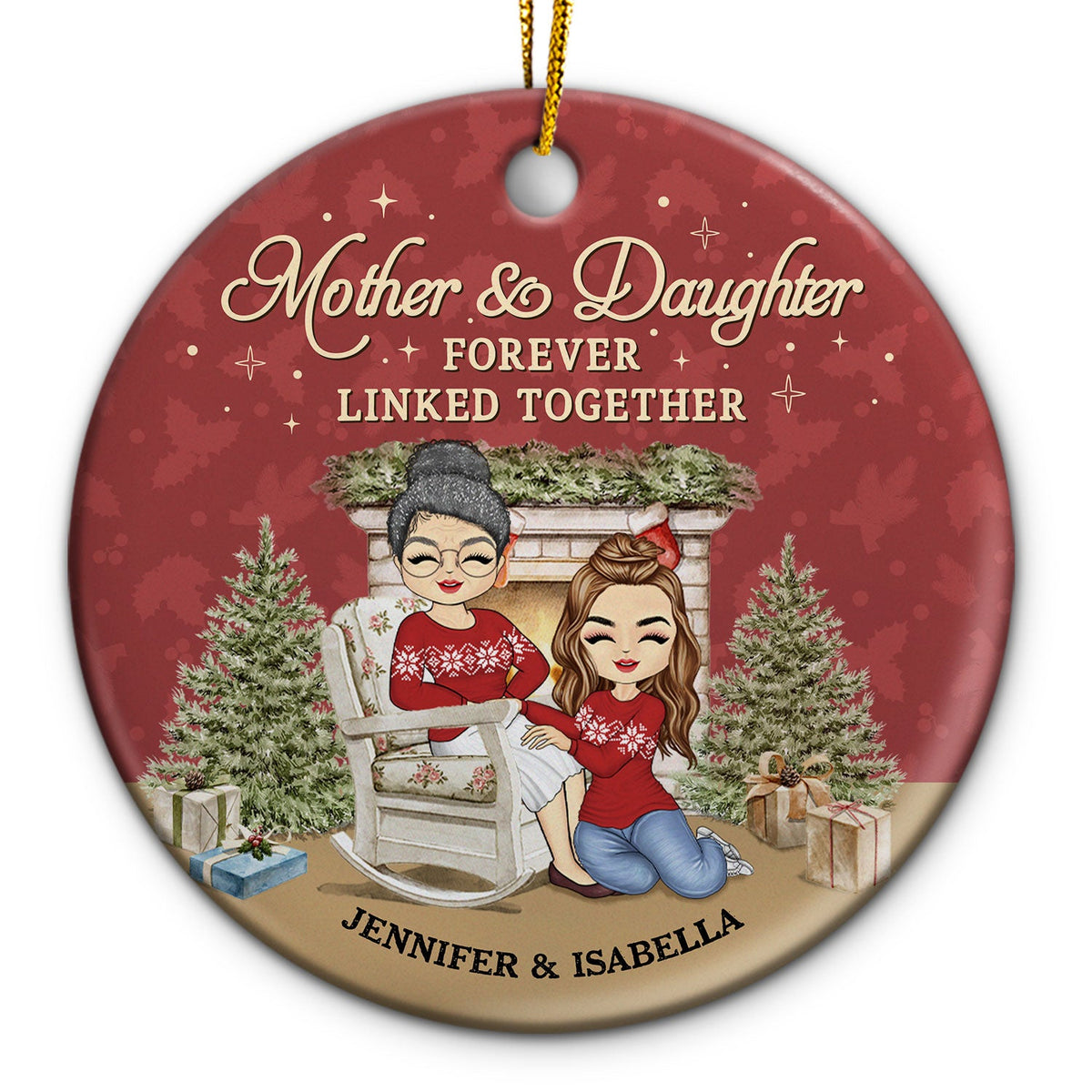 Family Mother Son Daughter Forever Linked Together - Christmas Gift For Mother - Personalized Custom Circle Ceramic Ornament
