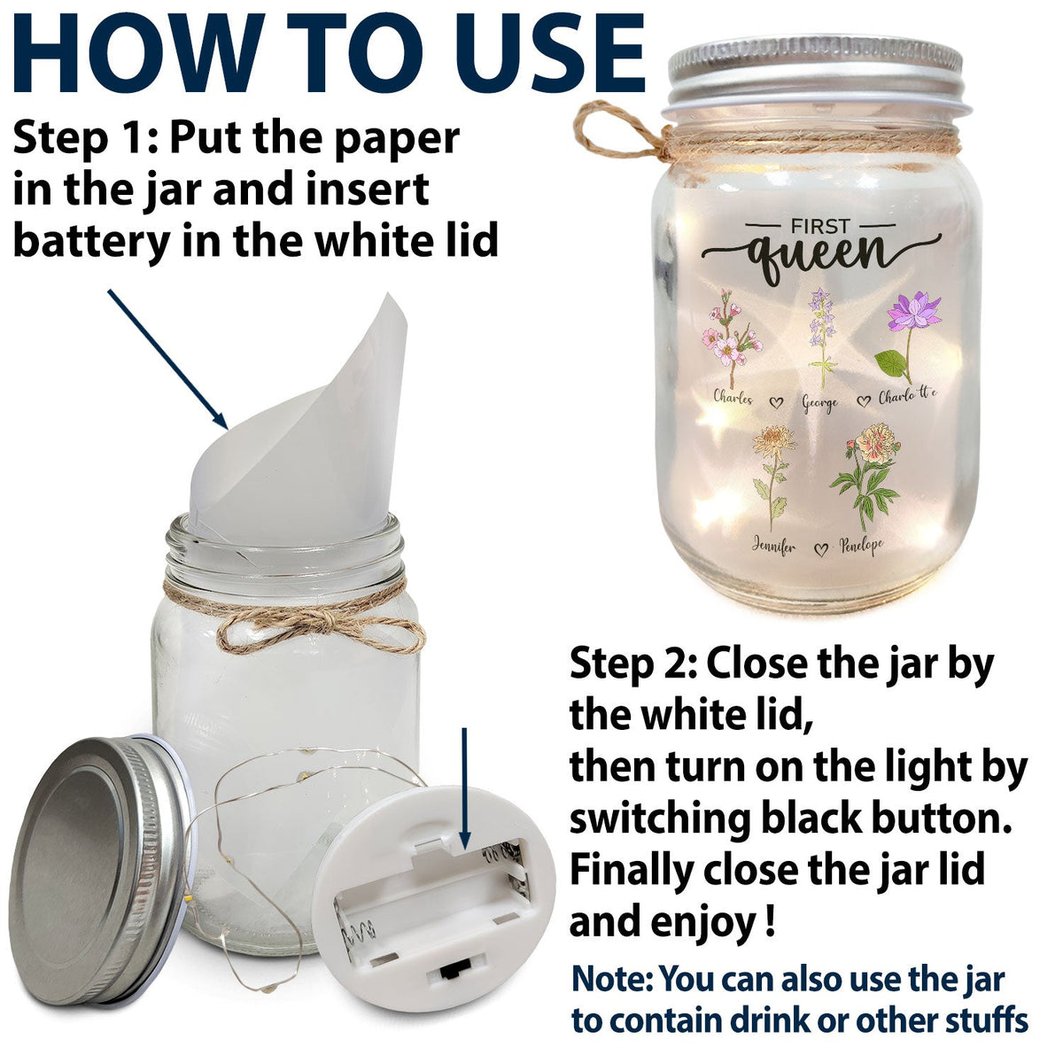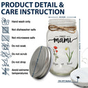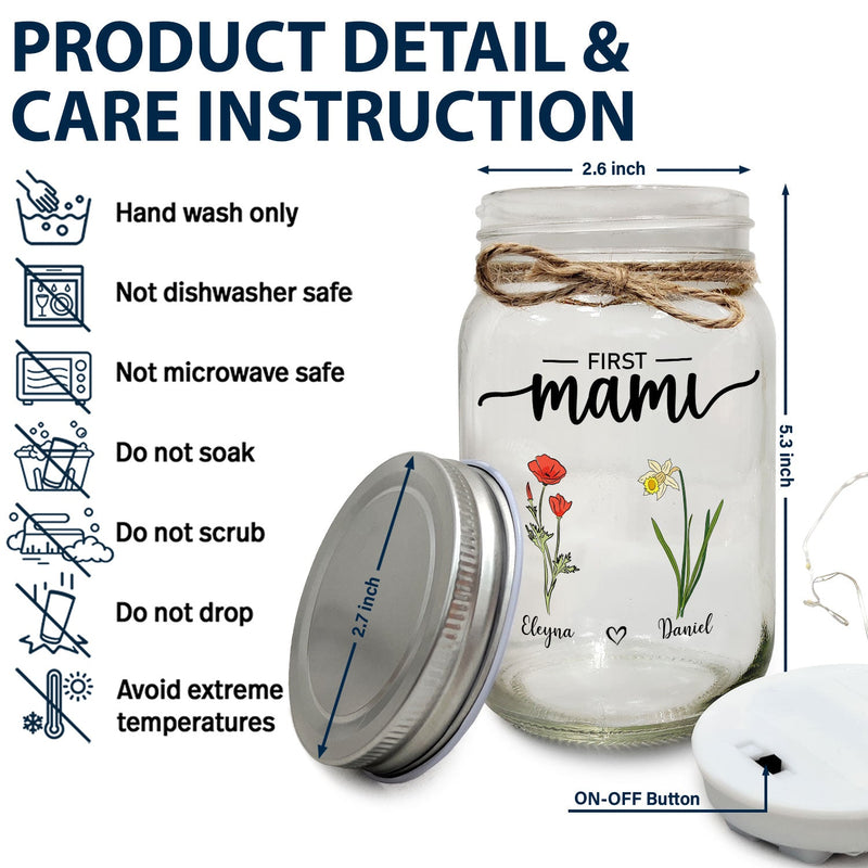 First Mama Now Nanny Flowers - Gift For Grandma, Nana, Granny - Personalized Mason Jar Light
