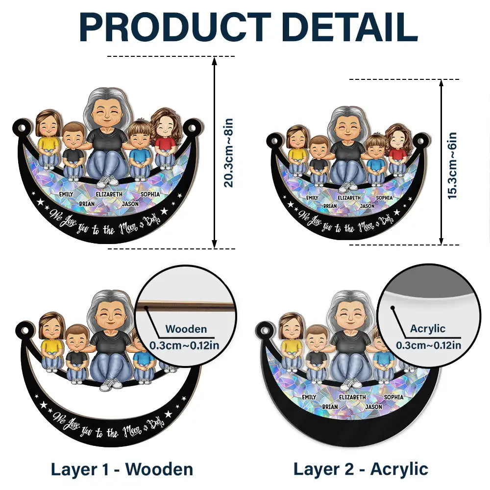 Grandma Mom And Kids On Moon - Personalized Window Hanging Suncatcher Ornament