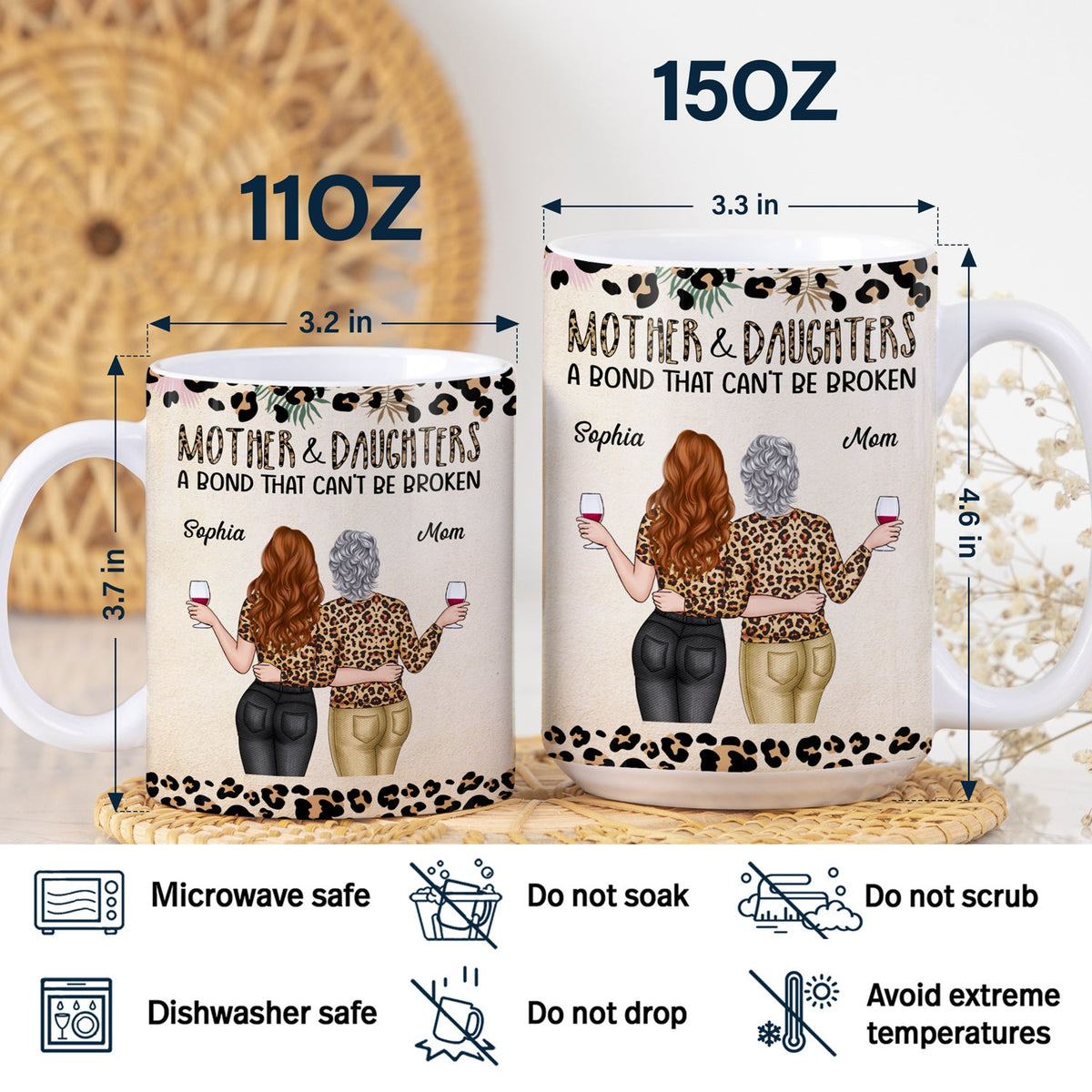 Mother & Daughters A Bond That Can't Be Broken - Gift For Mom, Mother, Grandma - Personalized White Edge-to-Edge Mug