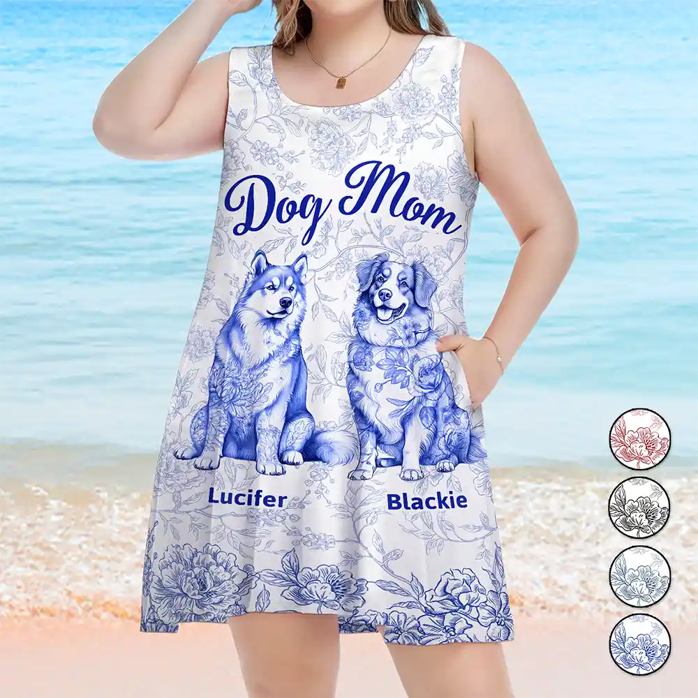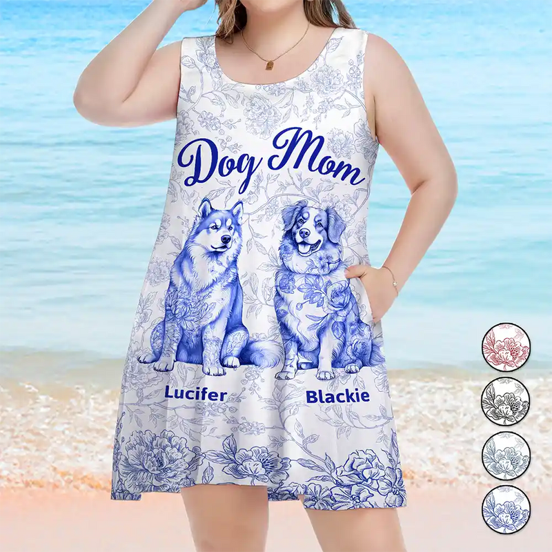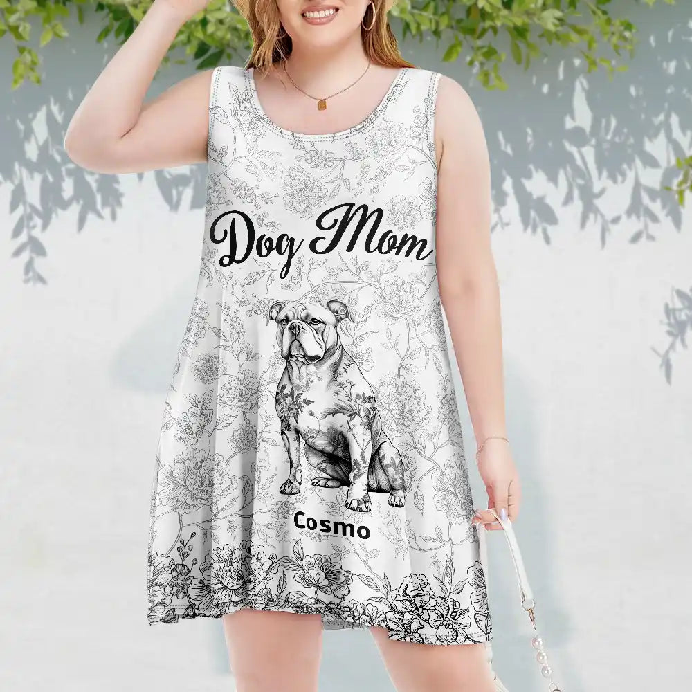 Dog Mom Toile De Jouy Style - Personalized Sleeveless Tank Dress