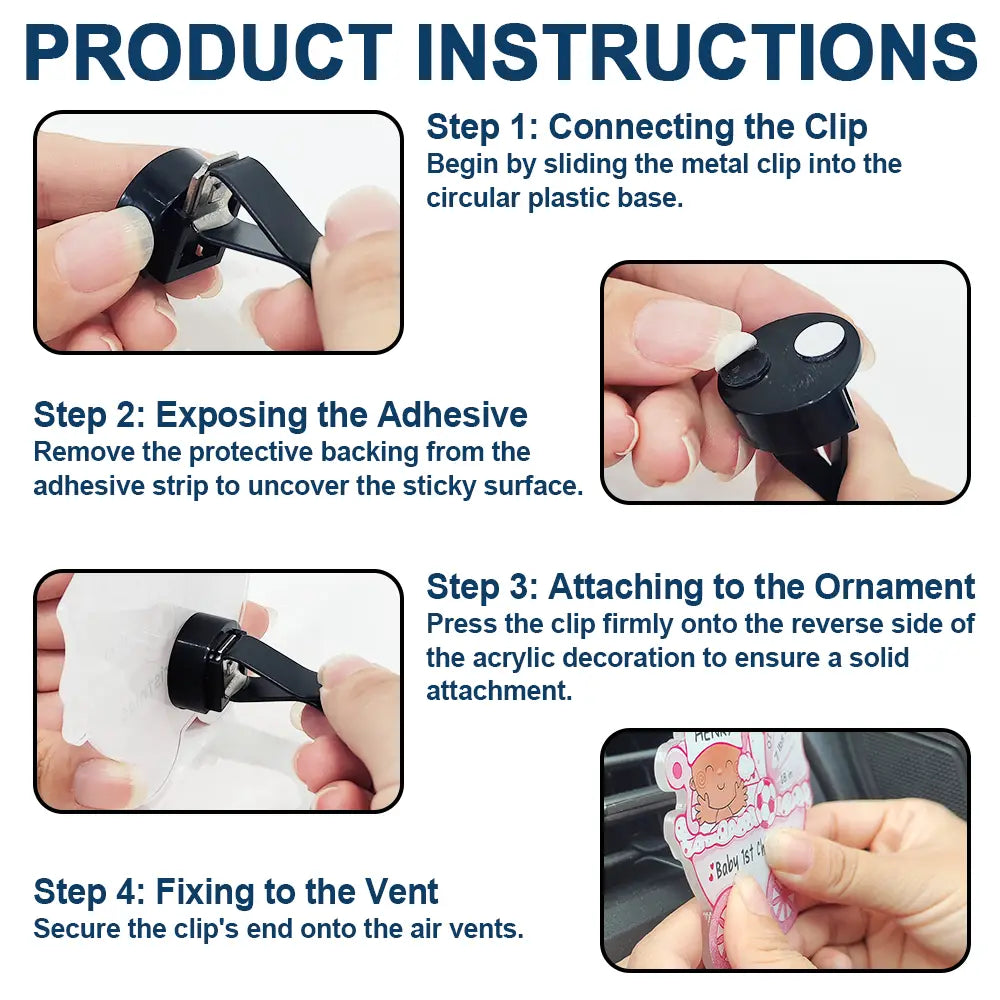 • Package included: 01 acrylic car vent clip, 06 double-sided adhesive pads (not pre-applied), and a simple instruction guide for easy attachment.