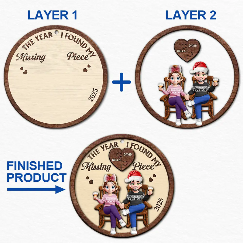 The Year I Found My Missing Piece 3D Effect Couple - Personalized 2-Layered Wooden Ornament