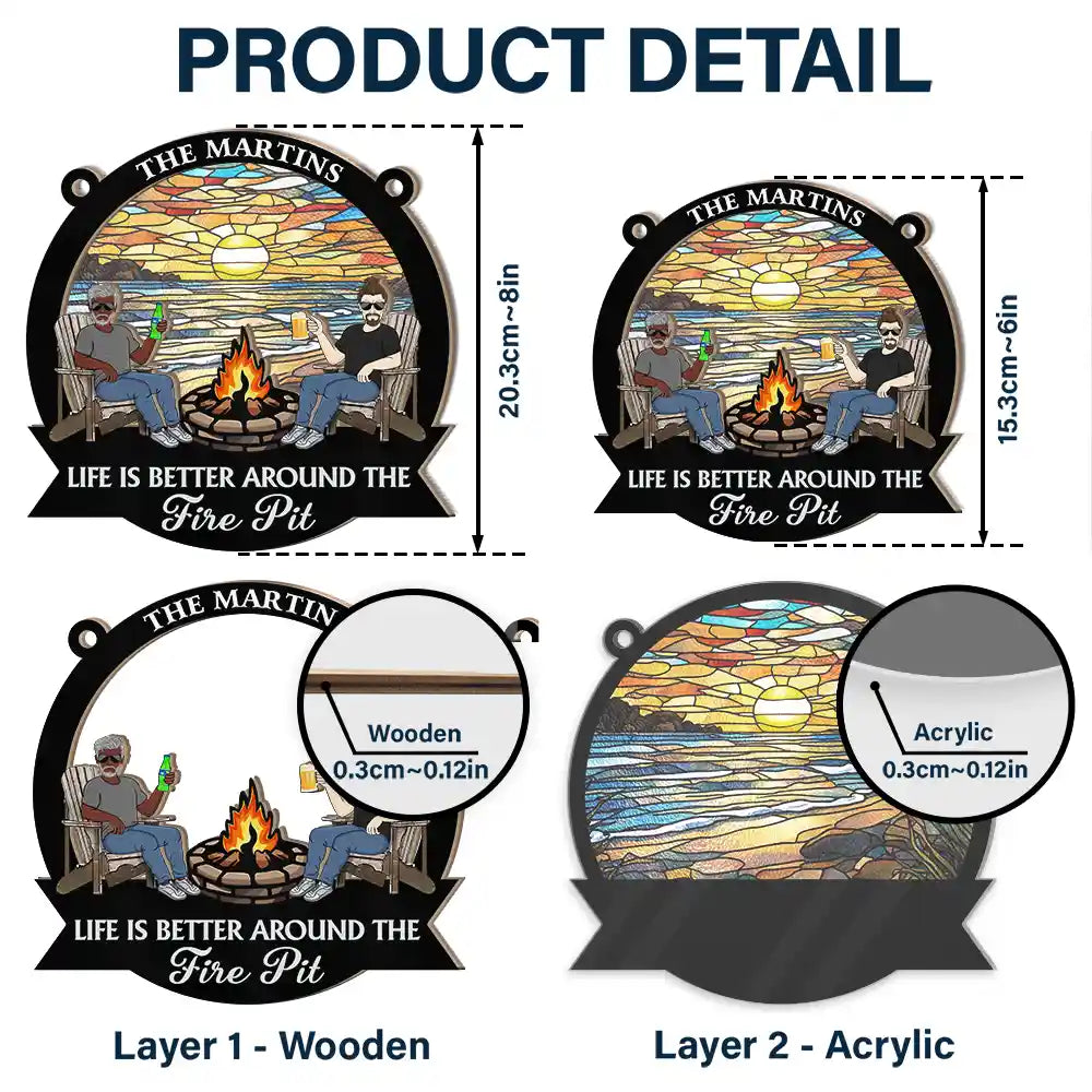 Life Is Better Around The Fire Pit Camping Grilling - Personalized Window Hanging Suncatcher Ornament