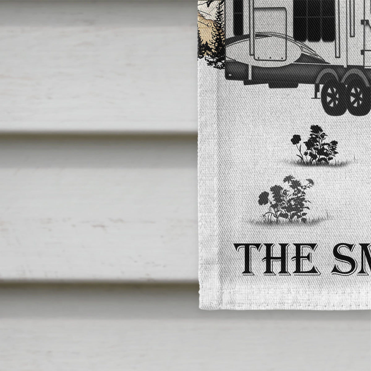 We received our banner in a very timely manner and couldn’t wait to open it. We were very impressed with the quality of the material that was used and the quality of the graphics and print. The 5th wheel graphic used actually resembles our trailer quite closely. Now to try and get a campsite to go to before they close for the season. Right now posted proudly in our yard which is our getaway campground for now.