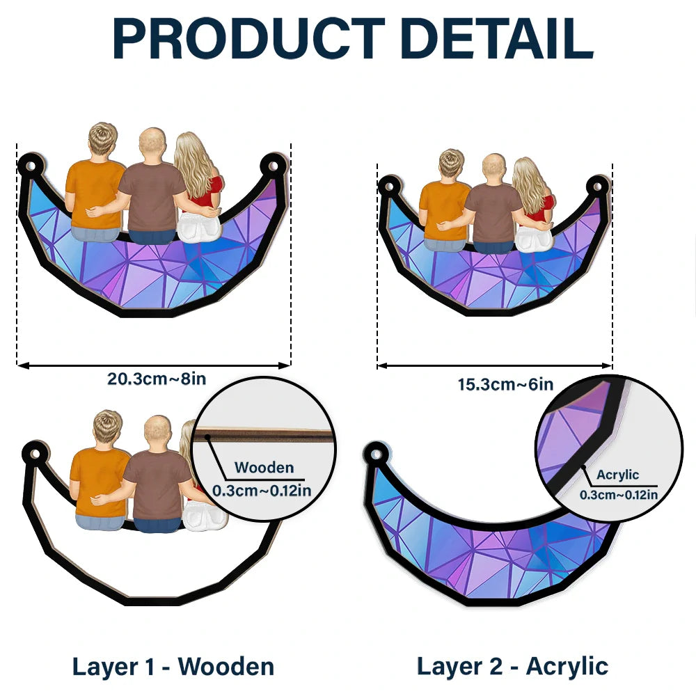 Grandpa And Grandkids On The Moon - Personalized Window Hanging Suncatcher Ornament