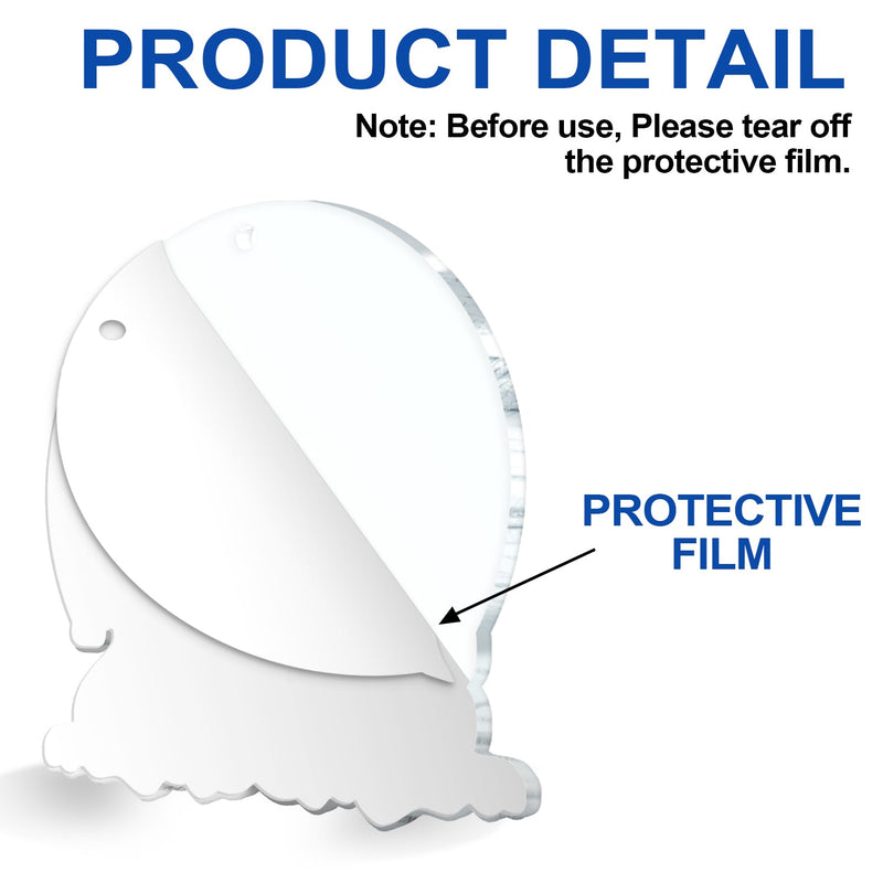 • Our Acrylic Ornament is covered with a protective film to prevent scratches and dust. Simply, remove the film and your product will be ready to display.